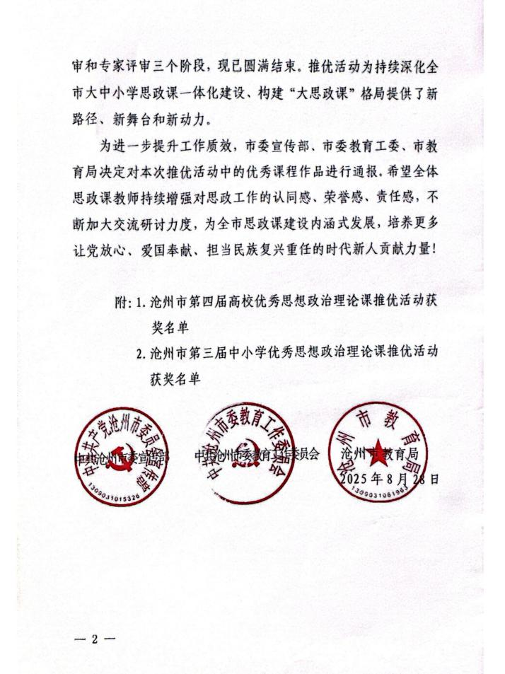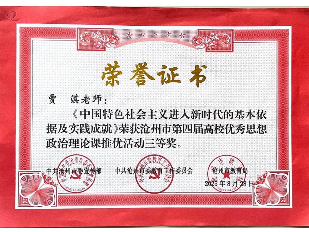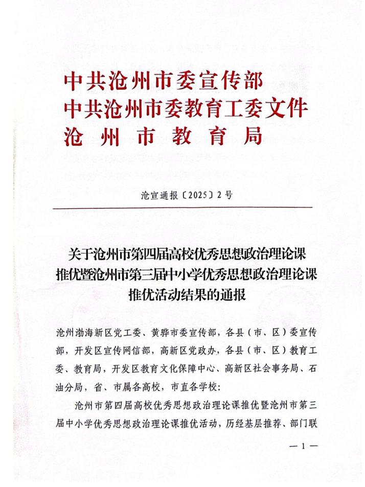 本次思政课评比活动由中共沧州市委宣传部、中共沧州市委教育工作委员会、沧州市教育局共同举办,旨在深入学习贯彻习近平新时代中国特色社会主义思想,推动全市思想政治理论课教学质量的整体提升。此次三位教师的获奖,不仅是sjb世俱杯思想政治理论课教学成果的集中展示,更是sjb世俱杯长期高度重视思想政治理论课改革创新的生动体现。
