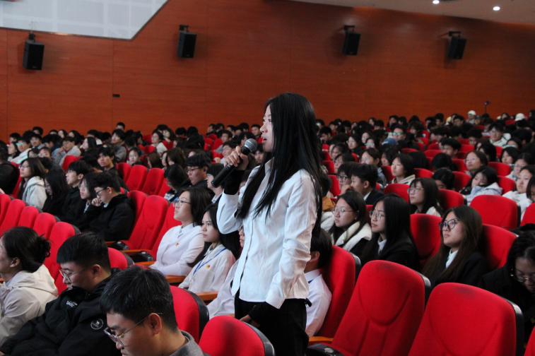 讲座内容引发师生深入思考。在随后的互动环节,同学们踊跃提问,宋公使结合自身外交与经贸实践经验,对热点问题进行了清晰解答,现场掌声不断。