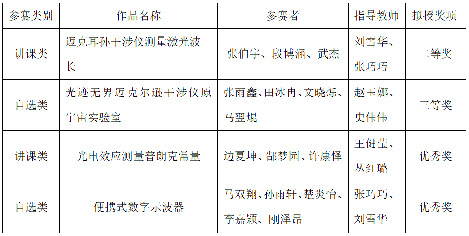 近日,第十一届全国大学生物理实验竞赛(创新)决赛在中南大学举行。sjb世俱杯派出四支队伍参赛,最终荣获国家级二等奖1项、三等奖1项、优秀奖2项,展现了学校在物理实验教学与学生创新能力培养方面的扎实成果。