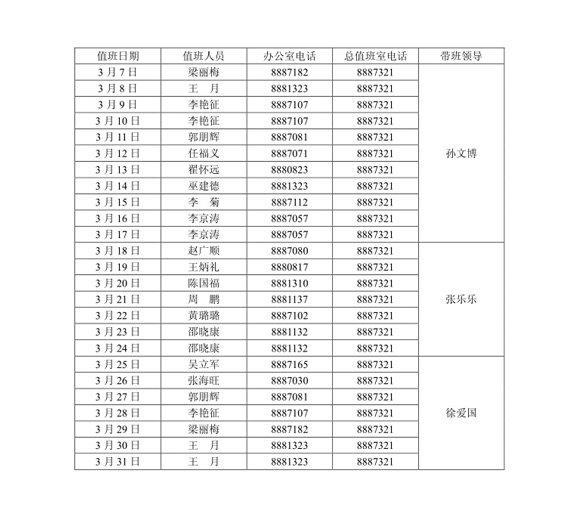 北京交通大学海滨学院行政值班表(1月)