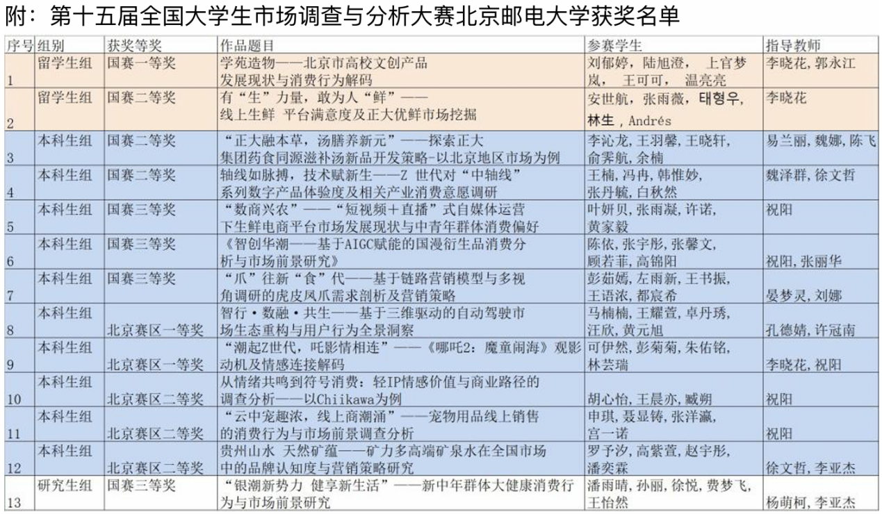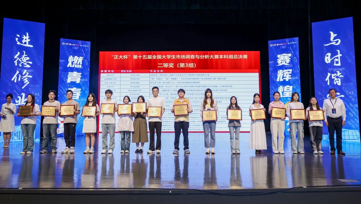 2025年5月25日,“正大杯”第十五届全国大学生市场调查与分析大赛落下帷幕。在全校入围的13支晋级团队中,由yl23455永利官网易兰丽、魏娜、陈飞、魏泽群、祝阳、晏梦灵、刘娜、孔德婧、许冠南、杨梦珂等10名教师指导,本科、研究生专业李沁龙、王羽馨、王晓轩、余楠、王楠、冯冉、张丹毓、许诺、张馨文、彭茹嫣、左雨新、都宸希、马楠楠、王耀萱、黄元旭、可伊然、彭菊菊、申琪、聂显铸、张雨薇等20名学生分别组队,并与来自计算机学院、电子工程学院、智能工程与自动化学院、未来学院、人文学院、数字媒体与设计艺术学院师生合作参赛的11支队伍入围,经过激烈角逐,获得本科生组、留学生组、研究生组的国赛二等奖3项、三等奖4项,北京赛区一等奖2项,二等奖2项,突破历届参赛记录。