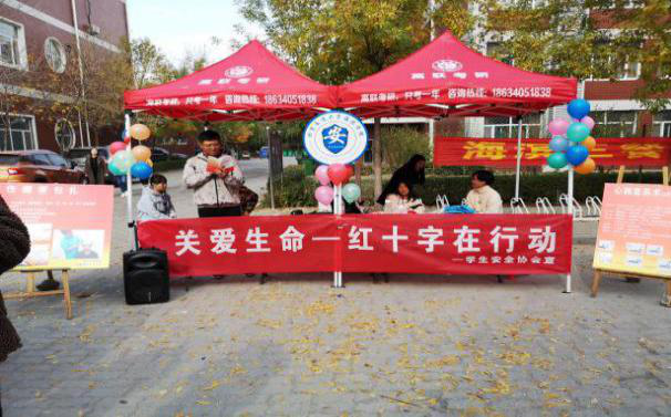 学生安全协会特意制作急救常识的展板,更加直观地向同学们展示安全急救知识,同时,他们在食堂门口搭建帐篷、设立宣讲处,增强广大师生安全急救意识。
