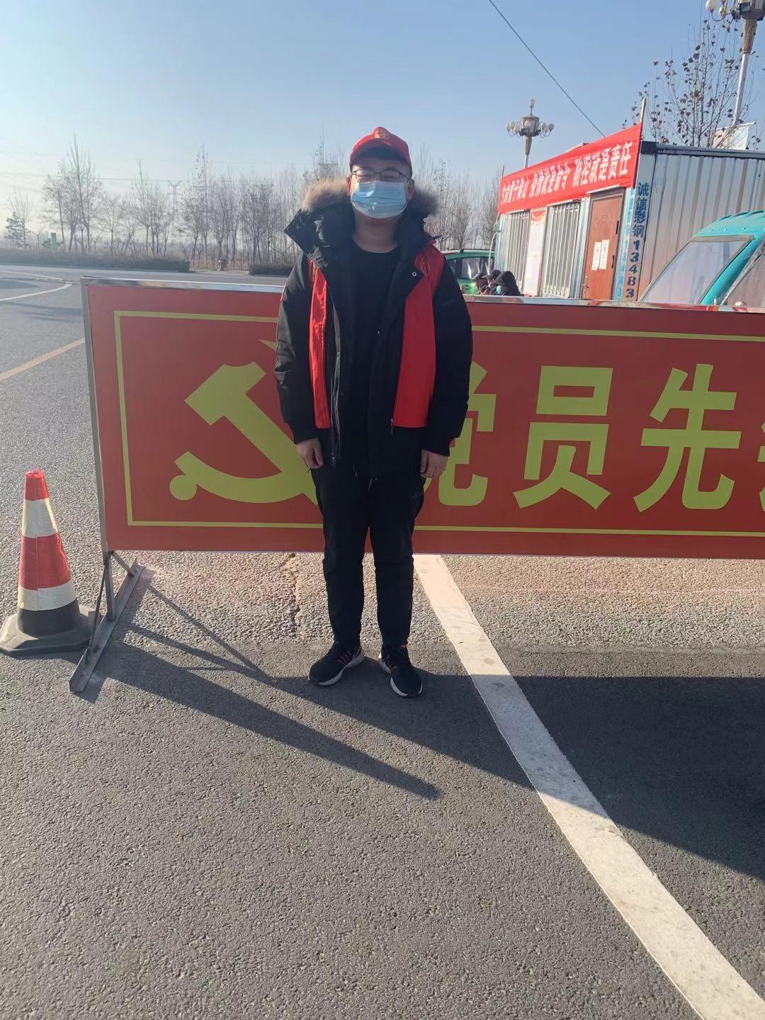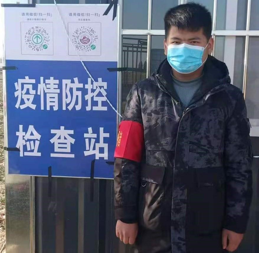 自动化2004班姚文轩同学在疫情期间积极参与家乡的抗疫行动,负责阻止外来车辆入内的工作。他表示,身边有无数和他一样具有战疫共同目标的大学生志愿者,他们都想成为保护家乡和亲人的一道墙,用实际行动支持疫情防控,保护家人。姚文轩希望这场没有硝烟的战“疫”能早日取得胜利,中国加油!