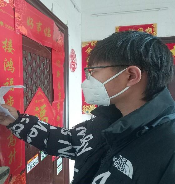 自动化2002班学生田琦在疫情暴发后积极投身到全区疫情防控工作,用行动为打贏疫情防控阻击战贡献志愿力量。他积极参与排查返乡及流动人员登记信息等工作。在空闲时间,陪同社区工作人员挨家挨户宣传疫情防控知识,并叮嘱村民尽量减少外出,注意自我防护。他认为,在疫情防控的关键时刻,我们更要扛起责任的大旗,尽己所能的为国家贡献力量。