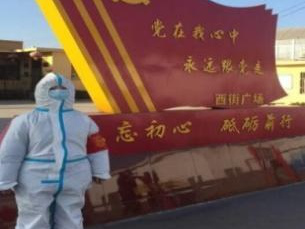 资源循环科学与工程2001班贺琎在武安市贺进镇贺进西街的志愿工作是卡口站岗、测温消毒,帮助村民们注册健康码并整理核酸检测相关信息。