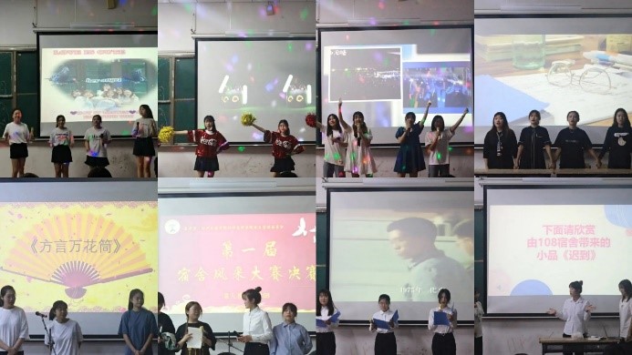 各宿舍按照抽签顺序依次上台,通过PPT展示与精彩绝伦的才艺表演,让大家进一步了解每个宿舍成员的情况,宿舍成员来自五湖四海,却为了不同的目标共同奋斗着。歌唱、舞蹈、小品、诗朗诵、相声等多种的才艺表演形式展现出了各寝室独具匠心的寝室文化,青春昂扬的精神风貌。