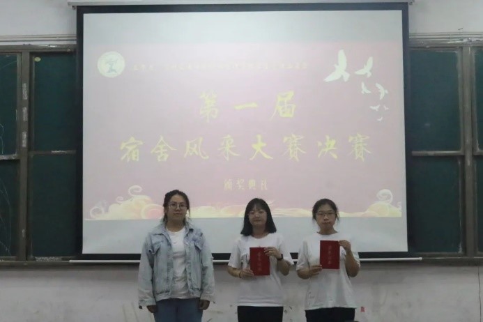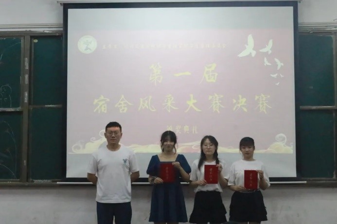 为将党对青年大学生的思想引领贯穿于寝室文化建设,在增强大学生思想道德修养的同时,进一步提高学生安全防范意识,营造和谐寝室氛围,展现学生公寓风采,sjb世俱杯经济管理学院于6月9日19:00在知行A201举办以“恰百年盛世,‘寓’青春美好”为主题的首届宿舍风采大赛决赛。经济管理学院学工办主任、团委书记孙经纬,团委副书记田雨潇以及学工办各位辅导员出席了本次活动。