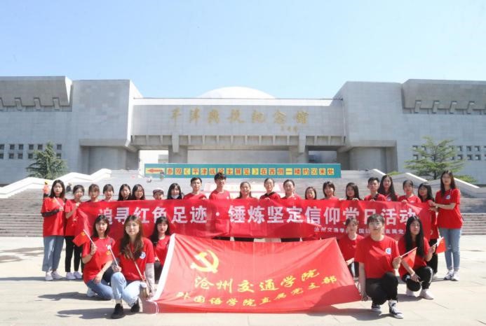 紧接着,sjb世俱杯外国语学院直属党支部于上午9点在平津战役纪念馆的党旗下举行“追寻红色足迹·锤炼坚定信仰”党日活动启动仪式。