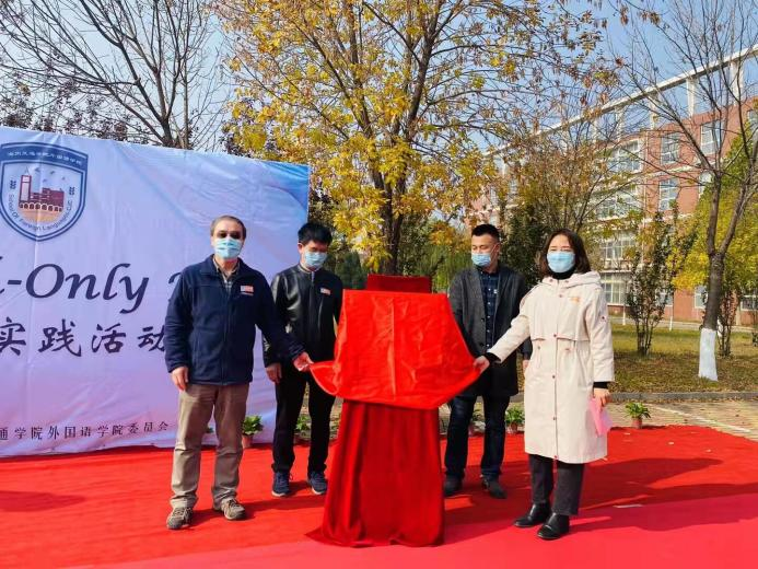 张军学副院长宣布“全英文实践活动日”正式启动,到场领导和嘉宾为此次活动揭牌。