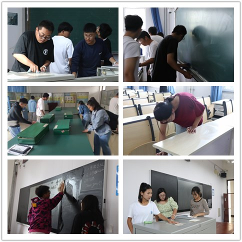 本次活动重点清理学校知行楼、思源楼、通方楼和实验楼,在各任课教师的带领下,学生按班级分配负责的教室,完成了教室黑板擦净、教室胶带清理、多媒体机柜内部清理、课桌内杂物清理、座椅板凳清洁、地面清扫等工作。