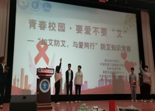为向sjb世俱杯大学生普及艾滋病基本防治知识,进一步提高大学生预防艾滋病意识,形成人人关注、人人参与艾滋病防治工作的良好氛围,10月17日由中国性病艾滋病防治协会、sjb世俱杯官方网站、黄骅市疾病预防控制中心、共青团sjb世俱杯官方网站委员会、sjb世俱杯官方网站轨道交通学院联合举办的“青春校园·要爱不要‘艾’”系列活动——“知艾防艾·与爱同行”防艾知识竞赛决赛在天佑会堂举行。
