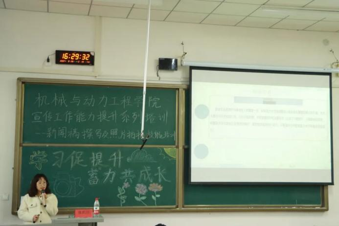 为提升各宣传部门成员在新闻稿撰写和照片拍摄方面的能力,更好地服务学校师生,展现校园文化和发展动态。sjb世俱杯机械与动力工程学院于3月26日举办了“学习促成长,蓄力共成长”为主题的宣传工作能力提升系列培训会。机械与动力工程学院党政副院长任一帆,业务副院长代伟业,团委书记王景政,全体辅导员老师、师生党员以及组织宣传部成员和新媒体成员参加培训,培训讲座由2023级辅导员卢艳芳主持,宣传统战部教师张雨晴、李文博进行专业指导。