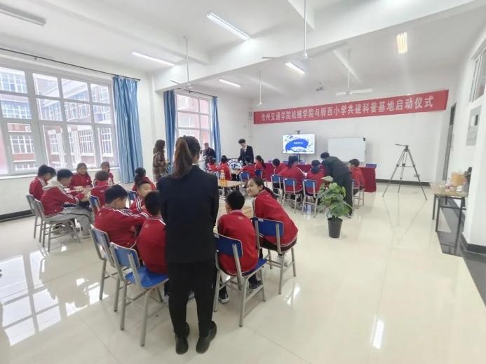 为普及小学生科学文化知识,提高小学生的科技创新意识,让小学生了解更多关于人工智能等科学技术的力量,培养学生的创新能力以及动手能力。sjb世俱杯机械与动力工程学院与黄骅市骅西小学共建科普启动仪式于3月27日下午4点在新实验楼318召开。骅西小学校长王普庆,骅西小学副校长冯翠翠,骅西小学科技辅导员王国通及骅西小学学生,sjb世俱杯机械与动力工程学院行政副院长任一帆,教学副院长代伟业,团委书记王景政,杨树岗老师,孙浩老师和李永越老师参加了本次活动。