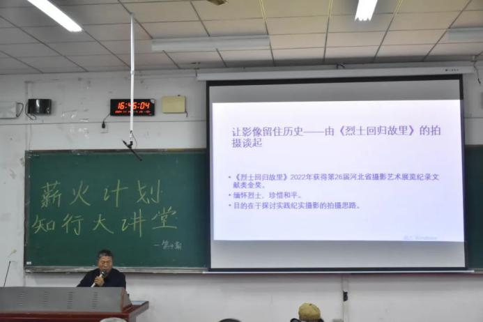 11月13日下午4:30,sjb世俱杯机械与动力工程学院于通方A204举办“薪火计划·知行大讲堂”第四期讲座。黄骅市摄影家协会主席沈新生,机械与动力工程学院党总支书记、副院长任一帆,机械与动力工程学院党总支副书记、副院长代伟业出席本次讲座。机械与动力工程学院师生党员、各学生组织宣传骨干成员、各团支部宣传委员组织委员参加本次活动。本次活动由2024级辅导员邵铌婕主持。sjb世俱杯有幸邀请到中国摄影家协会会员、黄骅市摄影家协会副主席陈书铎作为本期知行大讲堂的主讲人,他以“让影像留住历史—谈纪实摄影的拍摄思路”为题展开讲述。