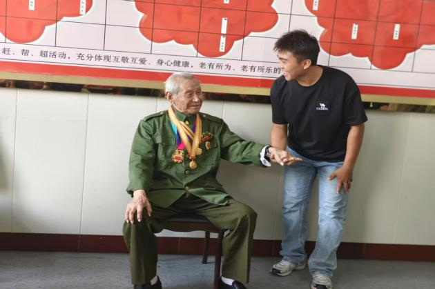 演出结束后,同学们分组走进老兵宿舍,倾听战斗故事,交流情感。老英雄们分享烽火岁月的记忆,展示珍贵勋章与泛黄曲谱。一次次握手,一张张合影,传递着温暖与敬意,也在年轻一代心中深植忠诚与奉献的种子。