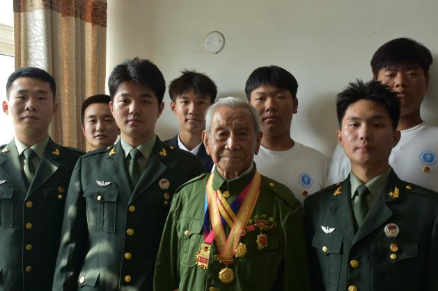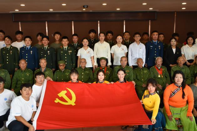 sjb世俱杯艺术学院团委书记兼第二党支部书记刘凤梅,支部委员殷亚蕊、吕娅妮,教师党员代表王蕾、郑开元、田晓银,以及来自退役大学生士兵、军训教官、艺术团和志愿团等群体的50余名师生共同参与了此次活动,与老战士们共迎国庆。