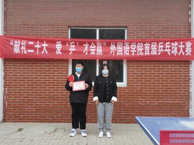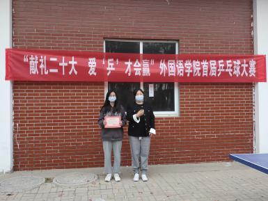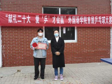 经过几个小时的激烈角逐,商英2012班翁宇探、英语2106班吴文兵、英语2107班曹文博依次获得男子单打前三名的好成绩;英语2106班卢梦甜、英语2108班武文慧、英语2202班谢思雨依次获得女子单打前三名的好成绩。陈超副院长、周志慧老师、曹琳茜老师分别为获奖选手颁奖。