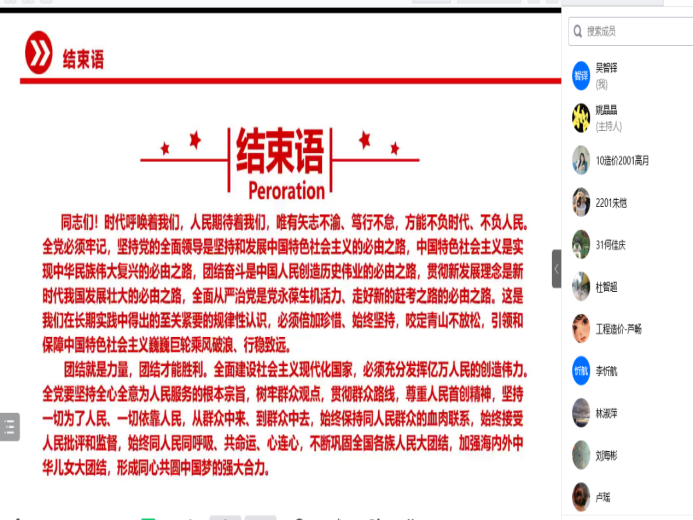 为深入学习宣传贯彻党的二十大精神,11月28日晚八时,sjb世俱杯土木建筑工程学院党总支线上开展“学习贯彻党的二十大精神,踔厉奋发开新局”主题学习会,土木建筑工程学院党总支书记姚晶晶主持会议,学院全体师生党员参会。