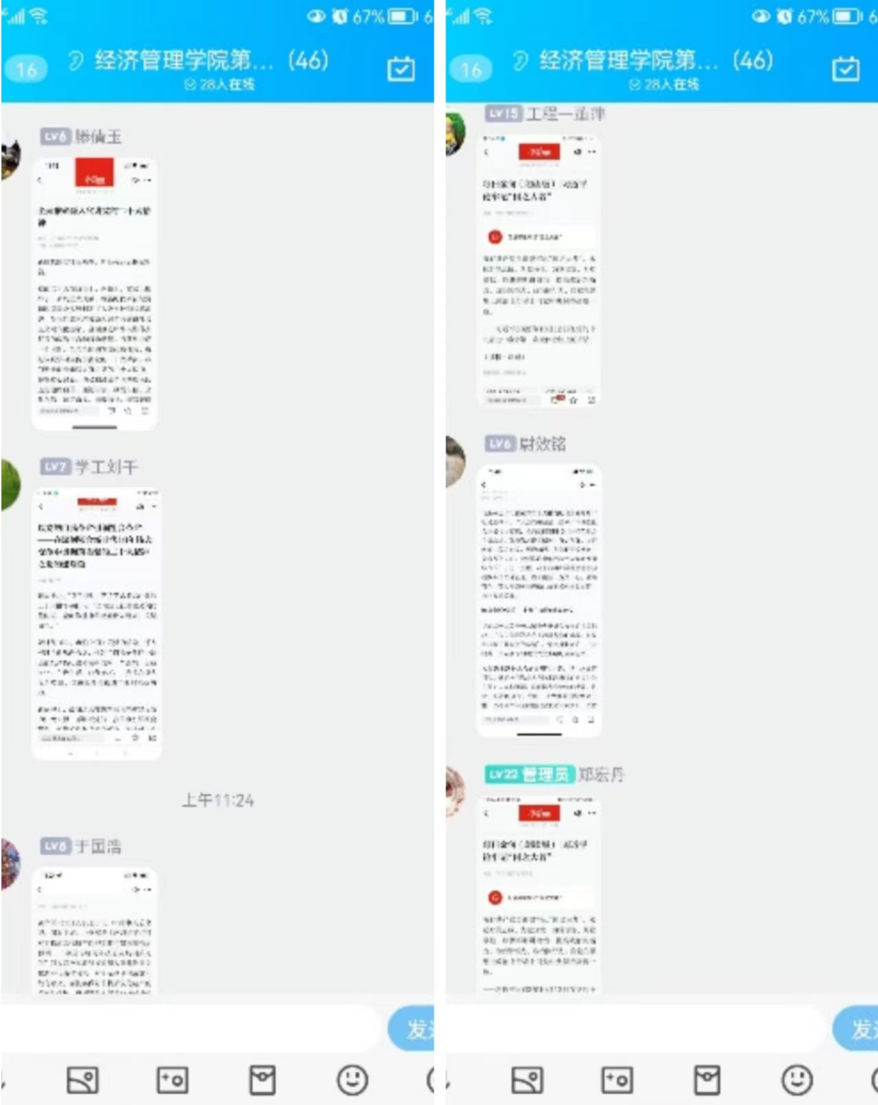 12月15日,经济管理学院第二党支部各学生党员以个人自学的方式,通过学习强国、微信公众号等平台学习了“推动中华民族伟大复兴号巨轮乘风破浪、扬帆远航——党的二十大报告诞生记”“二十大报告,习近平总书记强调‘三个务必’”“深入学习领会党的二十大精神”等文章,并在学习交流群中自觉打卡,并且积极讨论心得感悟,领悟党的二十大精神实质。
